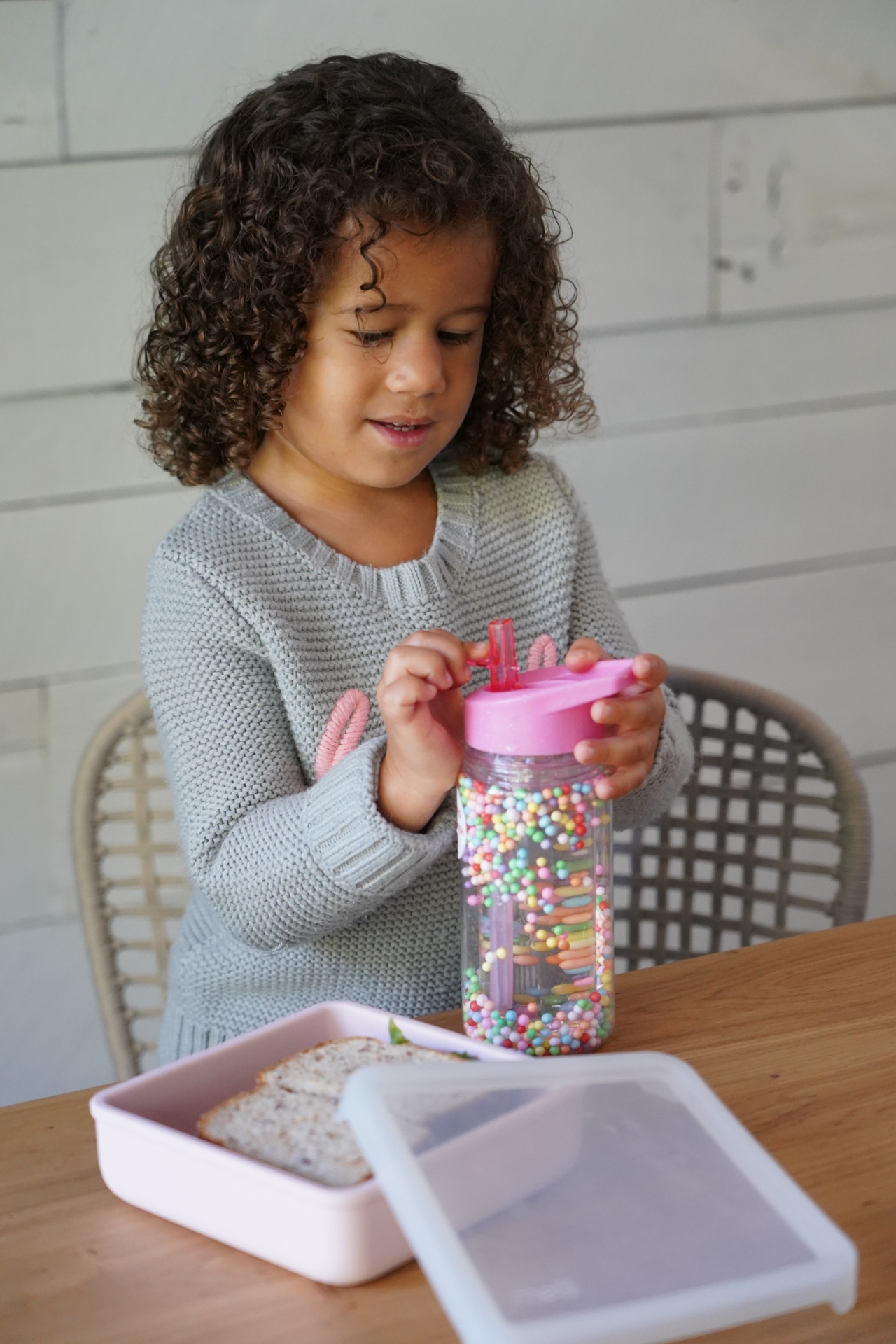 Mingiute sau sclipici senzoriale: se misca la scuturarea sau rasturnarea sticlei, adaugand un element de joaca la hidratare.