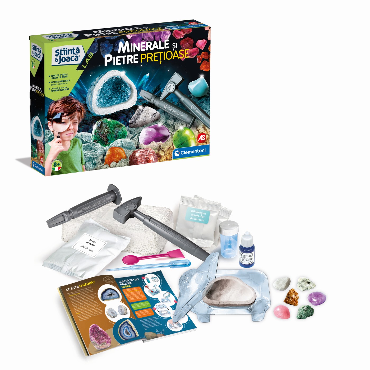 O caramida prin care trebuie sapat pentru a descoperi pietrele si mineralele!O geoda care trebuie creata si decorata cu cristale stralucitoare!O multime de pietre si minerale de descoperit si colectat.Fa-ti propria geoda!