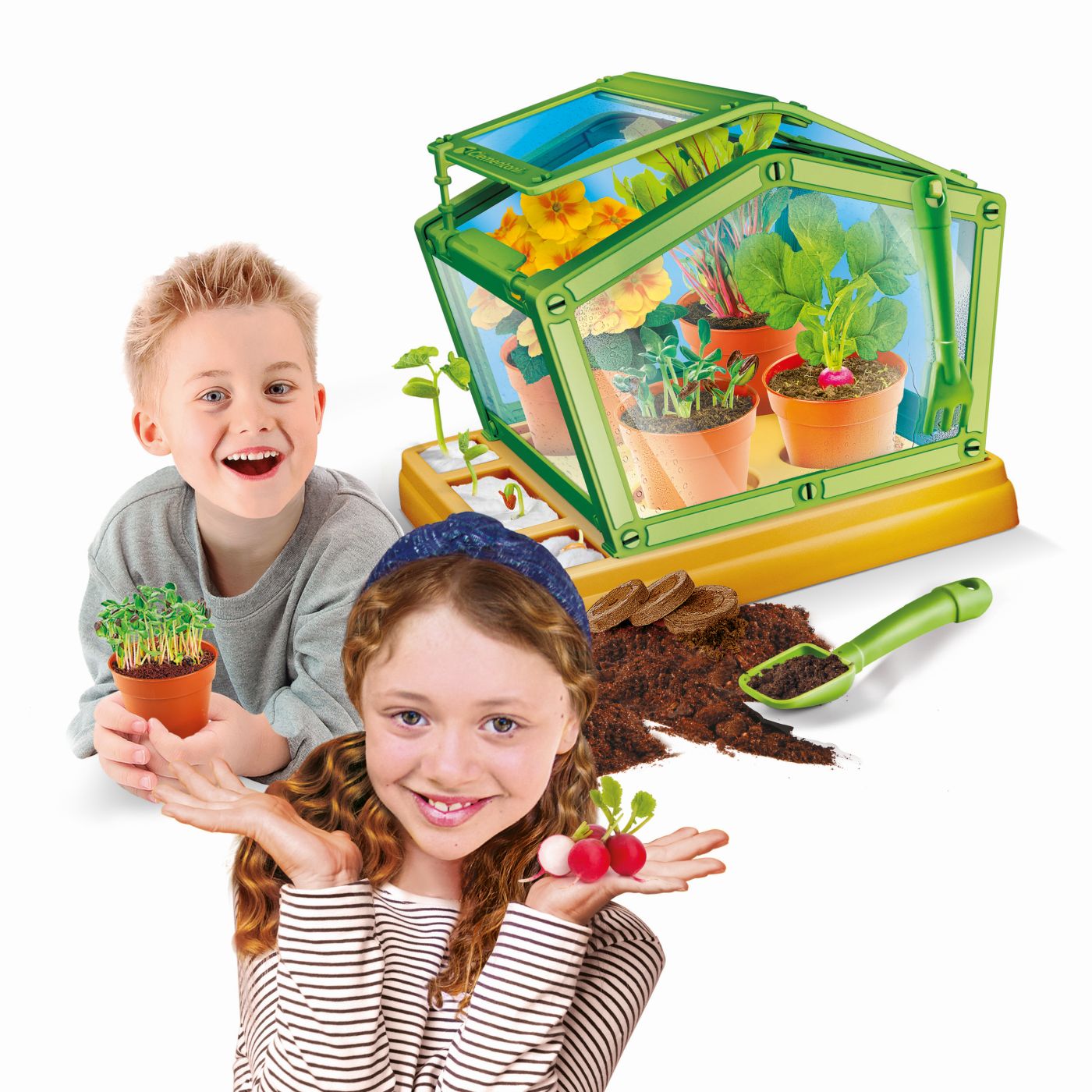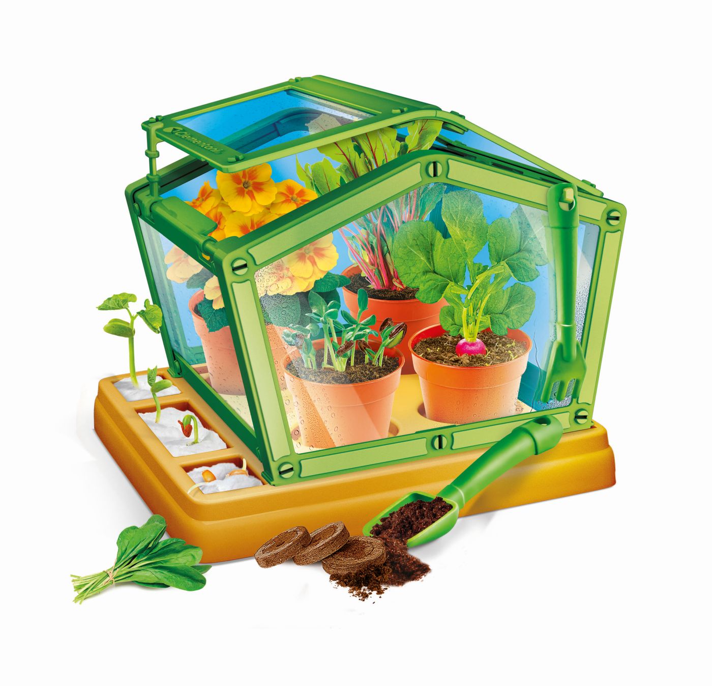 Setul include toate elementele necesare pentru experimentare și joacă: componente pentru seră, ghivece biodegradabile, semințe organice și accesorii utile pentru îngrijirea plantelor. „Prima mea seră” stimulează curiozitatea, răbdarea și dragostea pentru natură, transformând învățarea într-o experiență practică și captivantă.