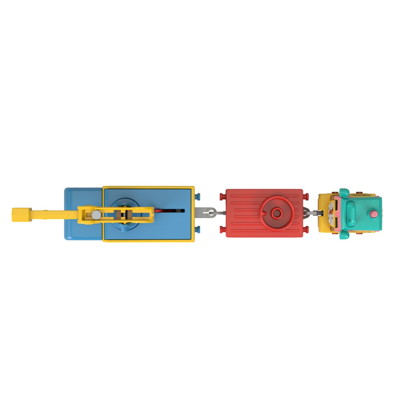 Setul include o locomotivă motorizată Thomas cu design "murdar" și 2 vagoane de marfă, toate prevăzute cu conectori pentru a putea fi atașate altor trenuri și vehicule din gama Thomas & Friends (seturile și accesoriile suplimentare se vând separat). Perfect pentru a completa orice pistă sau colecție de șine!