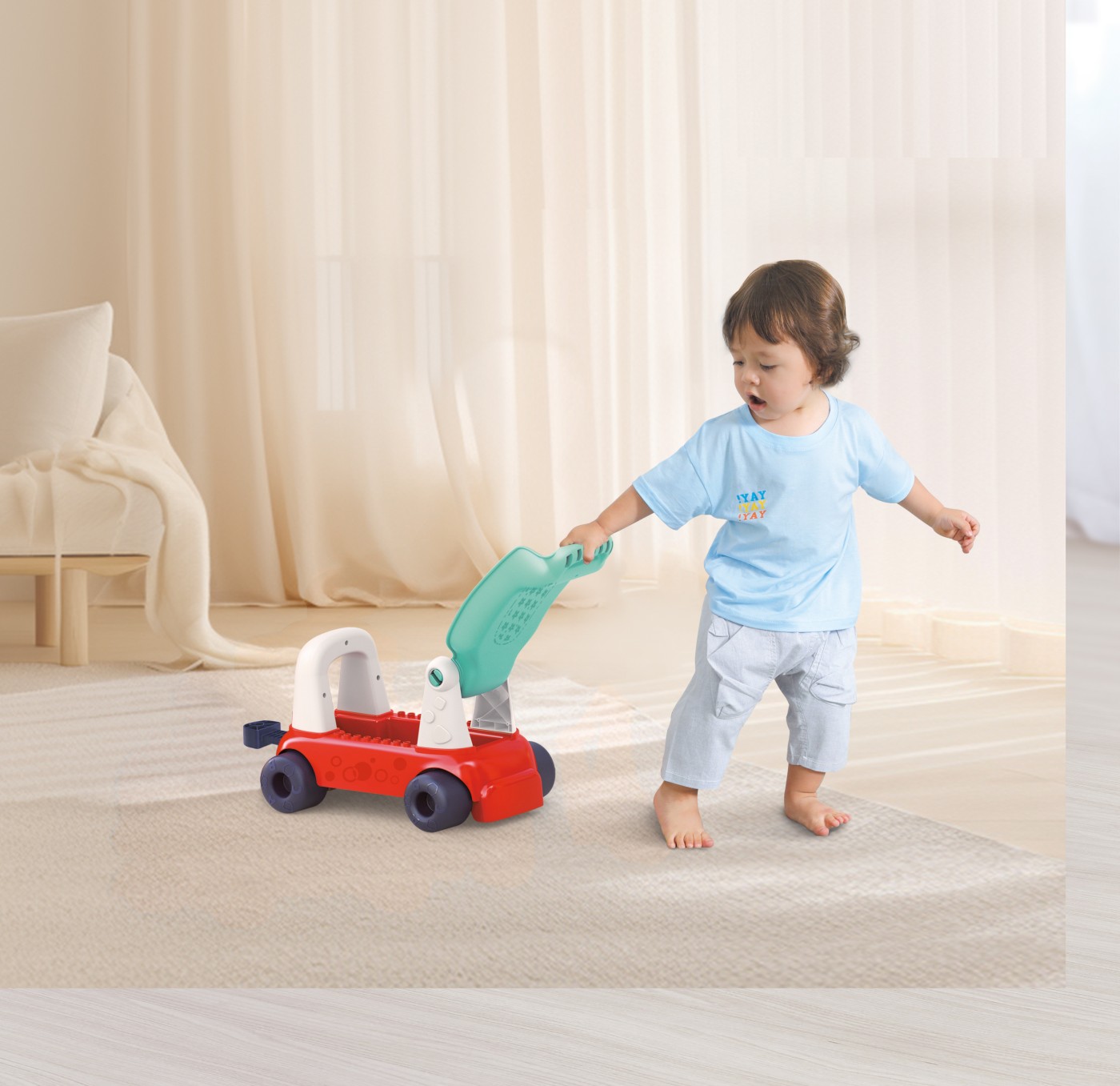 Trenulețul roșu 4 în 1 este o jucărie versatilă creată special pentru copiii mici. Combină perfect patru funcții într-un design atractiv și sigur: