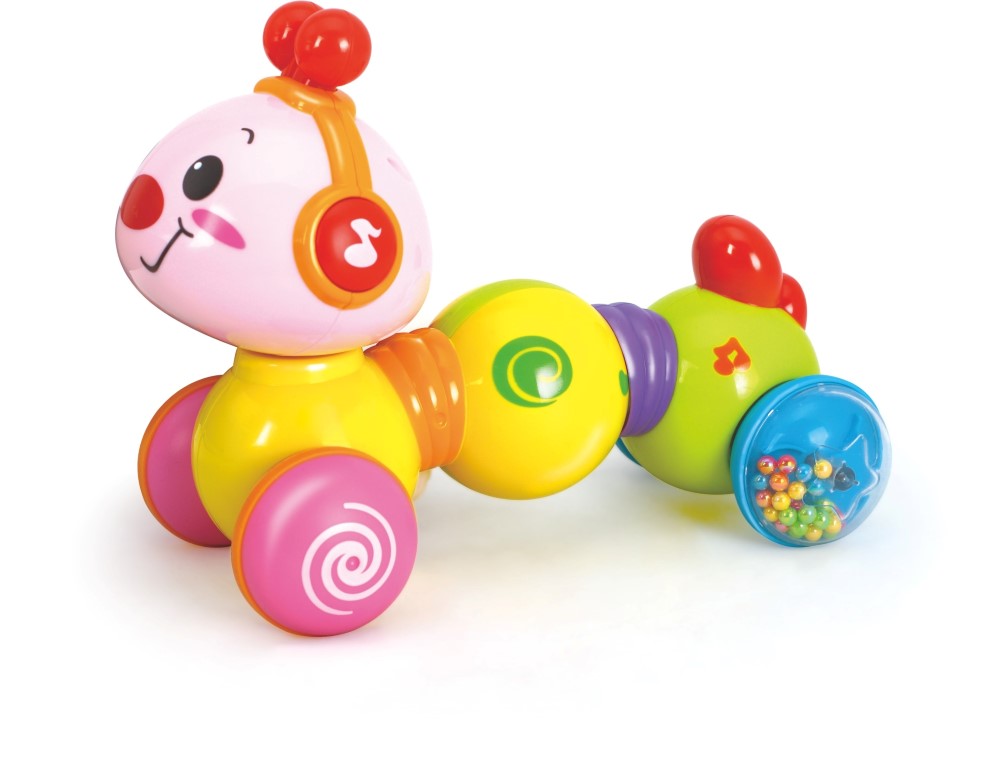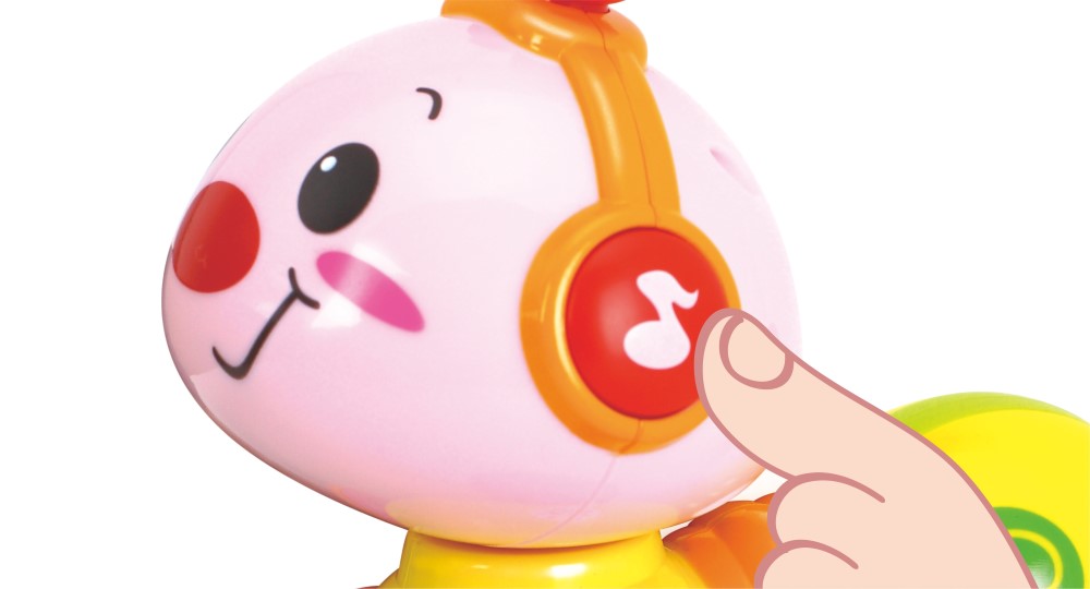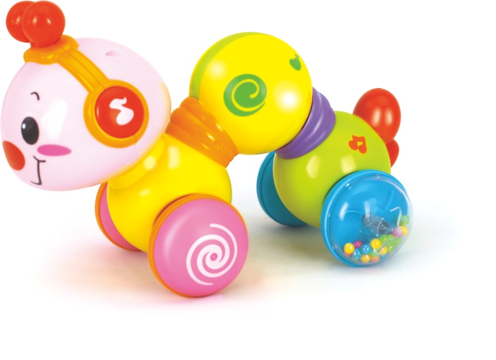 Un prieten vesel și colorat care pornește la drum atunci când este împins! Viermișorul interactiv cântă, luminează și îi ajută pe cei mici să se distreze și să învețe prin joacă. 🐛✨🎶