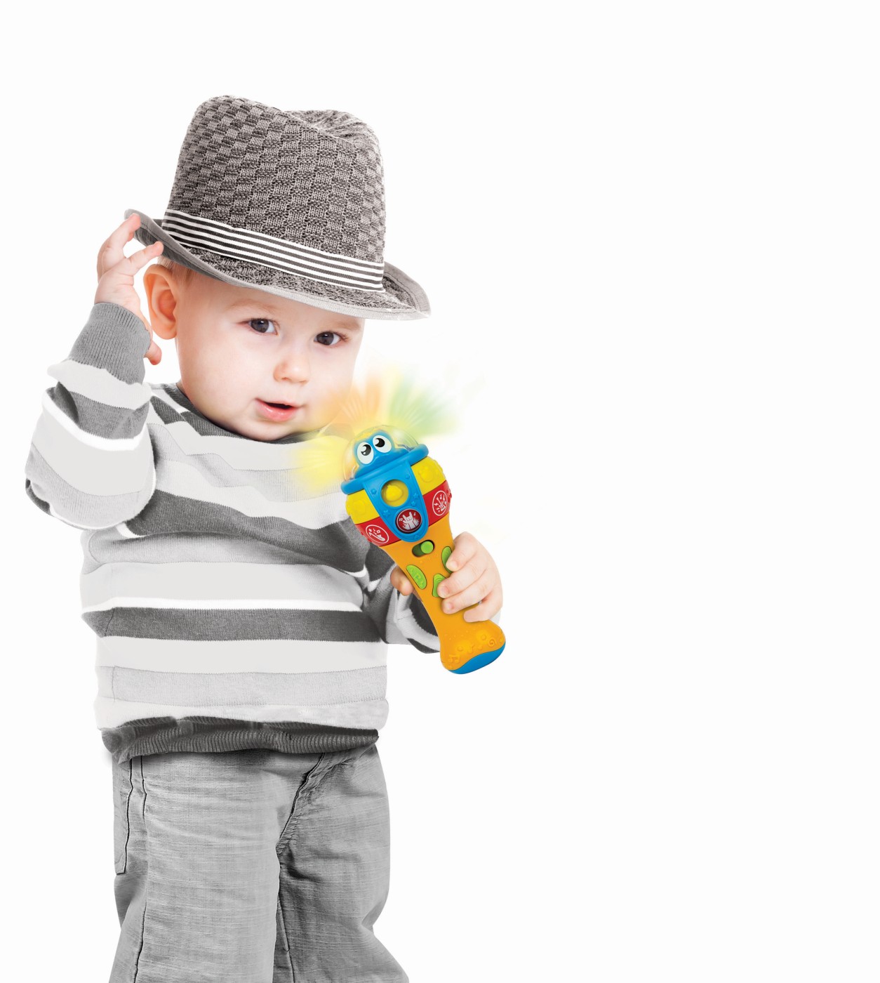 Un microfon vesel cu lumini, sunete de animale și ritmuri muzicale variate – ideal pentru micii artiști de la 12 luni! 🎶✨