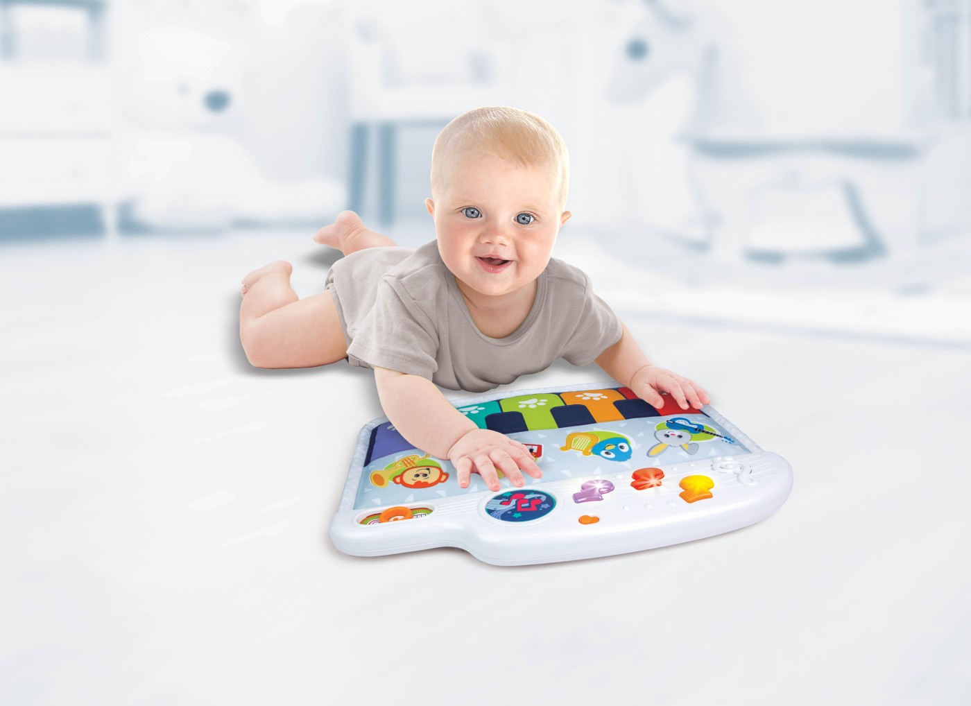 🎶 Un pian interactiv cu lumini colorate și sunete vesele, ideal pentru bebeluși de la 3 luni! Se atașează ușor la pătuț sau leagăn și transformă joaca în muzică, lumină și dezvoltare timpurie. 🌈🎹