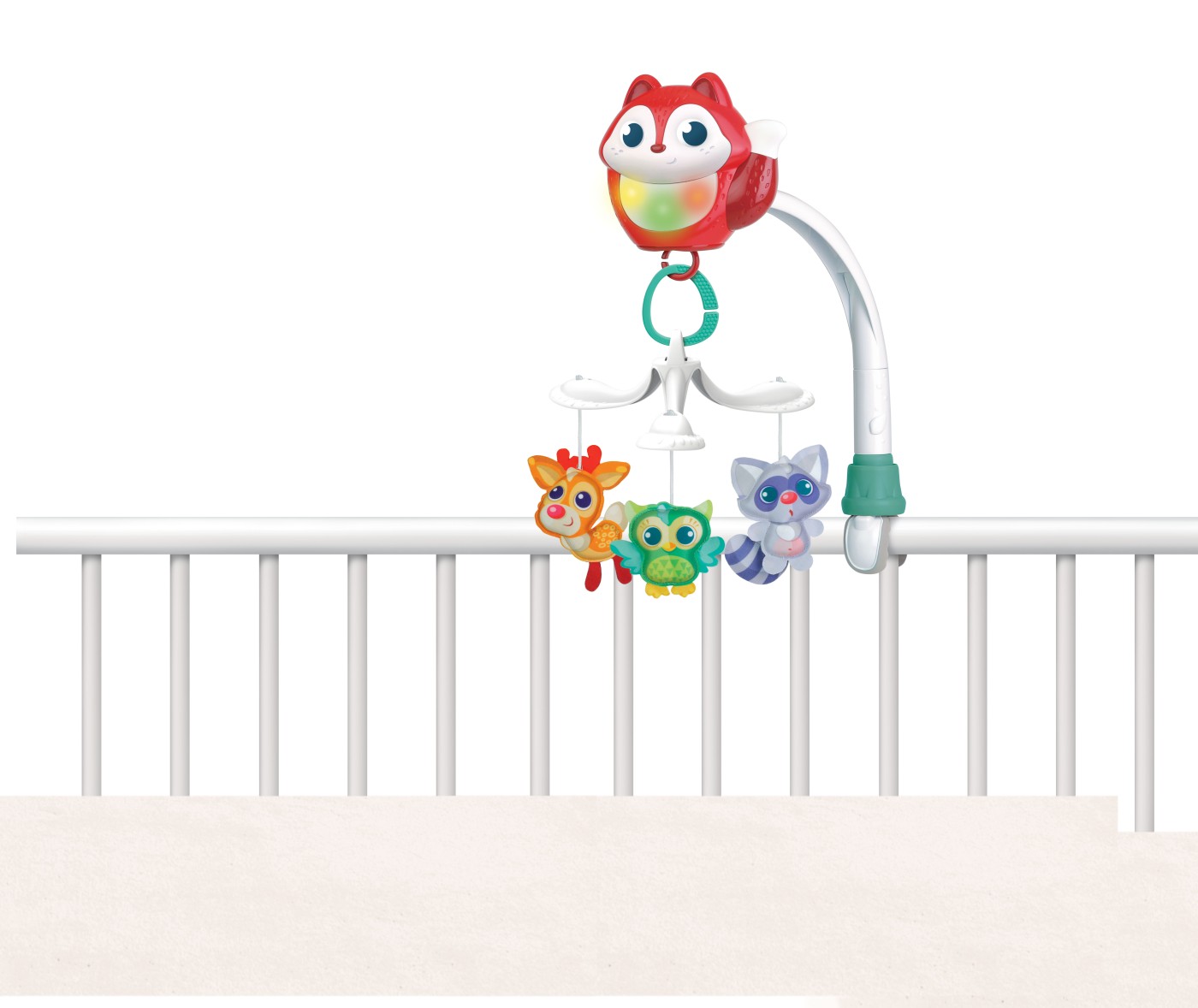 🦊🎶 Caruselul Winfun cu proiector 3 în 1 în formă de vulpiță aduce lumină, muzică și jucării suspendate pentru somnul liniștit al bebelușului. Ideal de la 0 luni! 🌙✨